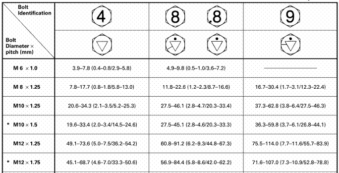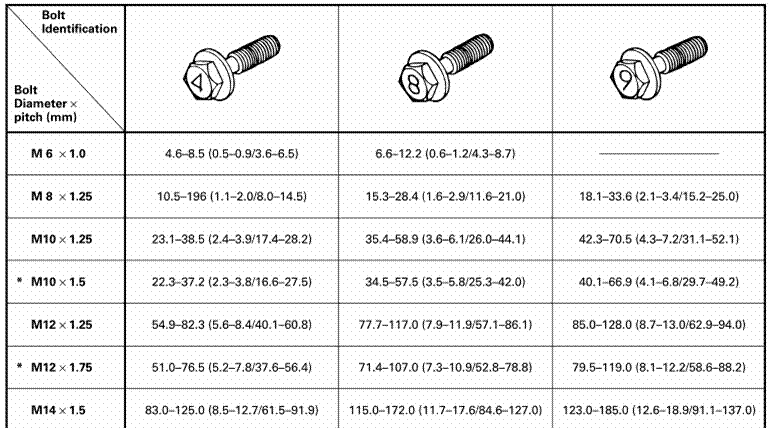 標(biāo)準(zhǔn)螺栓:N·m(kgf · m/Ib · ft)