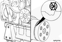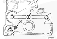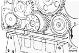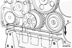 使用曲軸旋轉(zhuǎn)發(fā)動(dòng)機(jī),直至凸輪軸齒輪和曲軸齒輪上的指示標(biāo)記彼此相對(duì)。