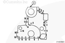 安裝康明斯KTA柴油發(fā)動(dòng)機(jī)齒輪室蓋和相關(guān)部件。參考步驟 001-031。