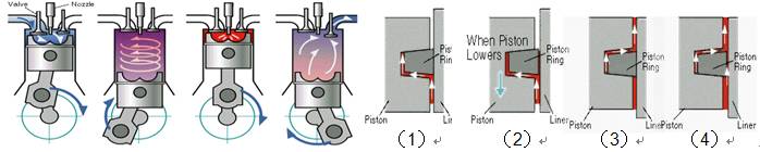 往復活塞式發(fā)動機運轉(zhuǎn)時活塞環(huán)會出現(xiàn)“泵油”現(xiàn)象,雖然現(xiàn)階段的發(fā)動機活塞環(huán)采用的“梯形環(huán)”和“扭曲環(huán)”可減少泵油現(xiàn)象,但不可避免的仍然會有少量的機油進入到燃燒室內(nèi)參與燃燒。