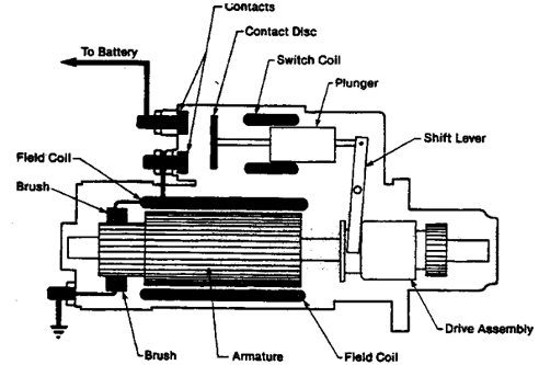 l          外殼和磁場線圈、轉(zhuǎn)子和換向環(huán)、馬達(dá)驅(qū)動機(jī)構(gòu)、電磁接觸器和切換桿、碳刷