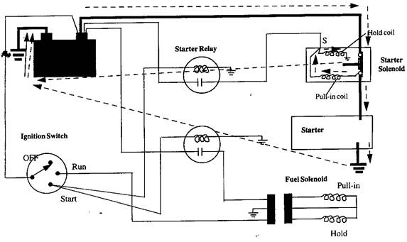 l          當(dāng)起動開關(guān)閉合時,電路流經(jīng)電磁閥吸入線圈和保持線圈、磁場線圈和轉(zhuǎn)子線圈。