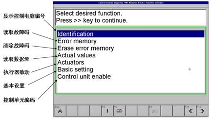 擴展的控制單元診斷通過選擇菜單幫助能夠快捷和易于車輛識別和在車上進行控制單元搜索