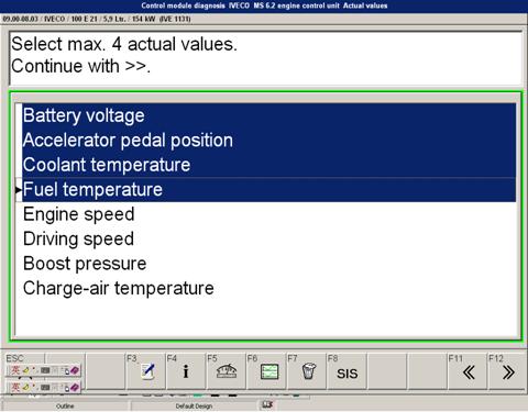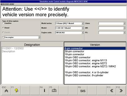 F12 至繼續(xù)選擇菜單,再次選擇菜單上用于車輛時別的要求的參數(驅動型式、車型、型號等)可以被選擇。