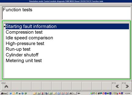 在發(fā)動機起動時,不正確的軌壓,轉速信號,同步信號的缺失,都可導致發(fā)動機無法起動。通過這個測試可發(fā)現(xiàn)導致無法起動的原因。測試條件:發(fā)動機無法起動測試方法:起動機帶動發(fā)動機運轉約五秒鐘。KTS 可讀出發(fā)動機無法起動的原因,如:無轉速信號等。