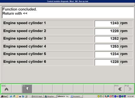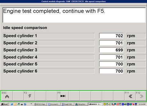 怠速比較測試時,KTS提供特定發(fā)動機轉速(如700/RPM),同時ECU取消發(fā)動機怠速控制功能,讀取各缸轉速。