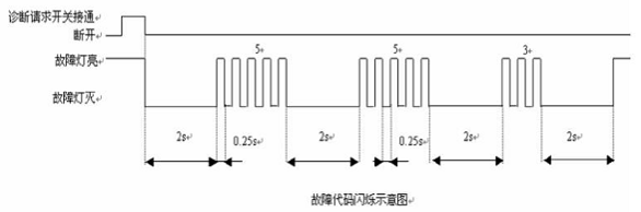 按下—松開診斷請求開關(guān)即可激活閃碼。每一次操作只閃爍一個(gè)故障碼,依次進(jìn)行即可讀完所有故障碼。