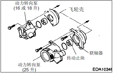 � 松開動力轉向泵固定螺栓,卸下動力轉向泵和傳動聯(lián)軸器。