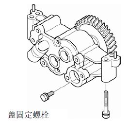 (2) 取下機(jī)油泵蓋固定螺母,拆下機(jī)油泵蓋。機(jī)油泵蓋與兩個定位銷固定在一起。