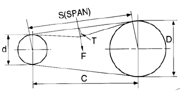 如果在皮帶切線和皮帶輪當(dāng)中施加偏差力“F”,皮帶拉緊調(diào)整適度。