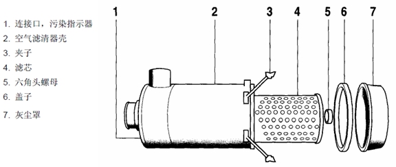 � 打開六角頭螺母,取下臟的濾清器濾芯更換或清洗。