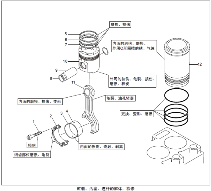 4. 缸套、活塞、連桿的解體,檢修