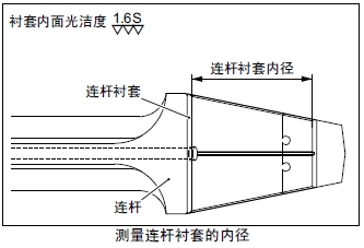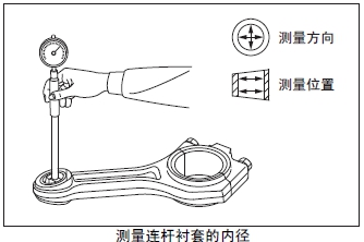 測(cè)量連桿襯套的內(nèi)徑。超過(guò)極限值時(shí)更換新的連桿襯套。
