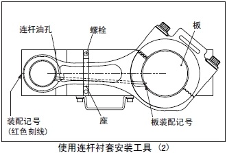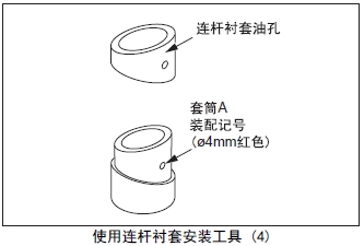 (1) 將新的連桿襯套的油孔對(duì)準(zhǔn)套筒A的裝配記號(hào)(ømm 紅色)裝在套筒A上。