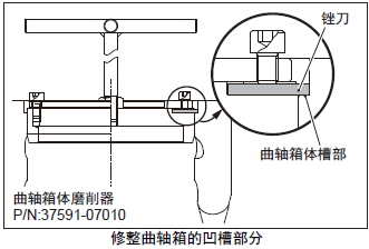 (1) 檢查曲軸箱的凹槽部分,確認(rèn)角部無(wú)裂損,與缸套凸肩下面接觸部分無(wú)單側(cè)接觸。有異常時(shí),修整曲軸箱的凹槽部分。