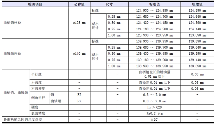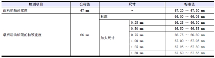 使用加大尺寸推力片時(shí),按照和使用加大尺寸推力片對(duì)應(yīng)的標(biāo)準(zhǔn)值研磨曲軸。