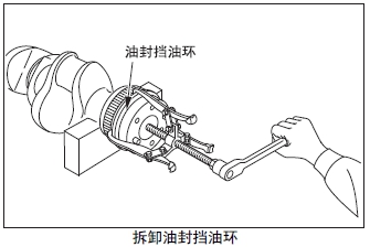 用齒輪拆卸器將油封擋油環(huán)從曲軸上拆出。