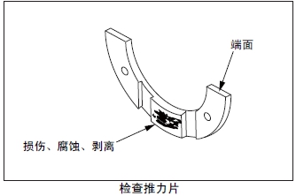 檢查推力片的滑動(dòng)面、背面和端面,如有接觸不良、滑動(dòng)損傷、腐蝕、異物嵌入等異常時(shí)更換新品。