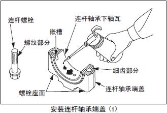 (c) 安裝連桿軸承端蓋時(shí),細(xì)齒形部分、螺栓座面或螺栓的螺紋部分不能有雜質(zhì)或金屬片夾入。