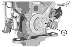 拆下皮帶輪 (1) 和皮帶。請參考皮帶預(yù)張緊器 - 拆卸和安裝。