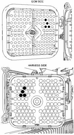 斷開 P2 接頭。 進行下述步驟來測量主發(fā)動機轉速 / 正時傳感器的電阻: 測量 P2-35(主發(fā)動機轉速/正時傳感器正極)與 P2-25(主發(fā)動機轉速/正時傳感器負極)之間的電阻。電阻 ... 110 到 200 歐姆