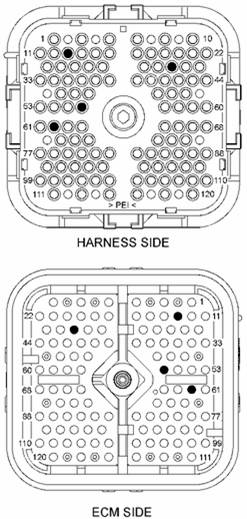 從 ECM 接頭上拆下傳感器信號導線后 -3 診斷代碼應為激活狀態(tài)。 當信號導線對發(fā)動機接地短路時,-4 診斷代碼為激活狀態(tài)。