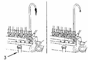 操作起動(dòng)注油泵。轉(zhuǎn)動(dòng)發(fā)動(dòng)機(jī)曲軸,直至燃油停止流動(dòng)。讀出在曲軸皮帶輪正時(shí)標(biāo)記上指示出的數(shù)字。對(duì)于3064發(fā)動(dòng)機(jī),噴油正時(shí)提前應(yīng)該為BTC8度或BTC20度。對(duì)于3066發(fā)動(dòng)機(jī),噴油正時(shí)提前應(yīng)該為BTC10度或BTC16度。關(guān)于噴油正時(shí),參見(jiàn)氣門(mén)室蓋上的發(fā)動(dòng)機(jī)信息標(biāo)牌。關(guān)于其他技術(shù)數(shù)據(jù),參見(jiàn)技術(shù)營(yíng)銷(xiāo)信息(TMI)。若要修正噴油正時(shí),轉(zhuǎn)動(dòng)燃油泵。請(qǐng)參閱步驟3。