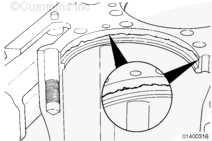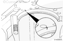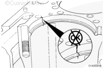 不必機加工缸體以去除可接受的裂紋。如果在初始檢查中發(fā)現(xiàn)不可接受的裂紋,則必須機加工沉孔臺階。與 Cummins® 特約維修站聯(lián)系。