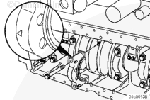 主軸承蓋上標(biāo)記有“V”字樣。使“V”標(biāo)記指向發(fā)動(dòng)機(jī)的前面。定位不正確會(huì)導(dǎo)致發(fā)動(dòng)機(jī)嚴(yán)重?fù)p壞。 |