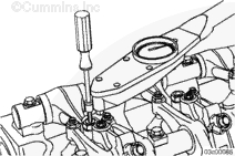使用度盤式扭矩扳手(量程 0 到 150 in-lb)擰緊噴油器搖臂調(diào)節(jié)螺釘。如果調(diào)整過程中螺釘發(fā)出咔噠聲,則需要維修螺釘和搖臂。