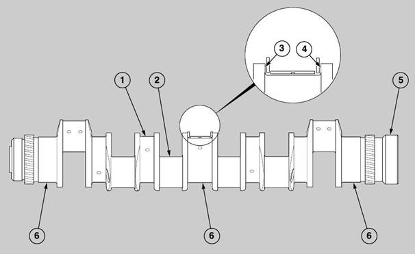 journals and six crank pins. Each crank pin holds two