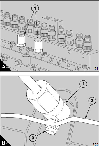 3 Fit the fuel leak-off pipes. Use new copper sealing
