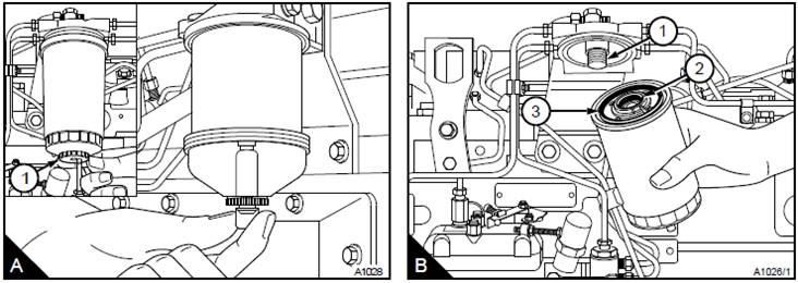 注意:工廠裝配的一些濾罐的螺紋接頭涂抹有特殊密封膠。維修時提供的濾罐代之以內(nèi)部密封組件(B2)。密封膠由膠夾固定在合適的位置上。如果未正確裝配濾罐密封,則可能會導致燃油噴油泵損壞。