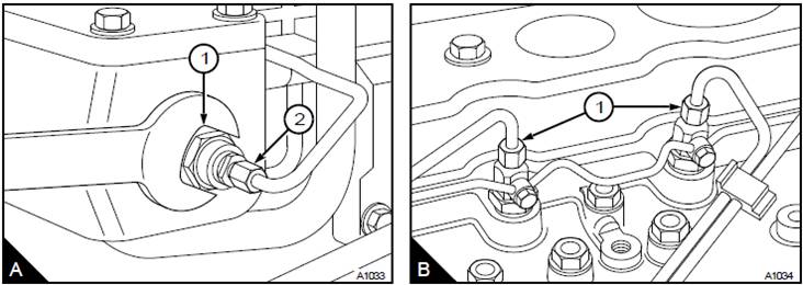 4松開(kāi)Perkins1000/4/6缸噴油器(B1)的兩個(gè)高壓接頭。