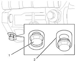 2.松開鎖緊螺釘(1)。轉(zhuǎn)動(dòng)隔套(2),以便將鎖緊螺釘(1)擰緊抵到噴油泵的軸上。逆時(shí)針方向轉(zhuǎn)動(dòng)噴油泵齒輪來(lái)消除齒隙。將鎖緊螺釘(1)擰緊至扭矩13N·m(9.6lbft)。