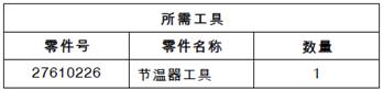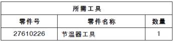 4.將水溫調(diào)節(jié)器(3)放置到水溫調(diào)節(jié)器殼體(1)中。安裝27610226節(jié)溫器工具(5)以擠壓擋圈(4)。旋轉(zhuǎn)工具(5)以將水溫調(diào)節(jié)器(3)固定到水溫調(diào)節(jié)器殼體(1)中。面,以在發(fā)動機運轉(zhuǎn)期間將水溫調(diào)節(jié)器(3)固定。