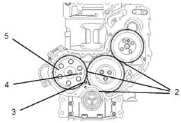8.使用內(nèi)六角螺釘(3和4),將附件驅(qū)動(dòng)組件安裝到前殼體(6)的后面。擰緊六角頭螺釘至扭矩為22N·m(16lbft)。