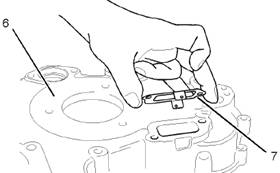 6.將前齒輪室(6)與缸體(11)下加工面對(duì)齊。使用適當(dāng)?shù)闹背吆腿?,檢查對(duì)中度(11)公差。更多信息,請(qǐng)參閱《技術(shù)參數(shù)手冊(cè)》,“殼體(前)和殼體(前)蓋”。