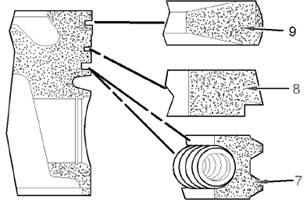 b.將錐形表面的中間活塞環(huán)(8)安裝到活塞的第二個(gè)槽中。壓印標(biāo)記“TOP”必須朝向活塞頂部。
