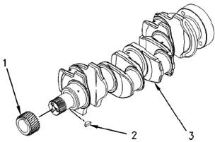 注:曲軸齒輪(1)可能在曲軸(3)上與其滑動配合。如果將曲軸(3)安裝在發(fā)動機(jī)內(nèi),先使用一個合適的工具,以確保曲軸齒輪(1)不是滑動配合,然后再從發(fā)動機(jī)上拆除曲軸。