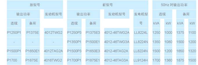 威爾信 1250kVA~1875kVA發(fā)電機(jī)組(原來(lái)由 Perkins4012和 4016系列發(fā)動(dòng)機(jī)驅(qū)動(dòng))有重大設(shè)計(jì)改變,產(chǎn)品類型增多,性能進(jìn)一步改善。具體變更見(jiàn)下表: |