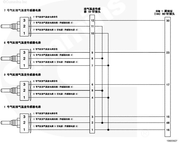 7 號氣缸排氣溫度傳感器電路 - QSK50 及 QSK60 工業(yè)用發(fā)動機(jī)