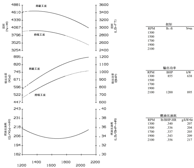 最大額定功率kW(BHP):895(1200) @2100r/min