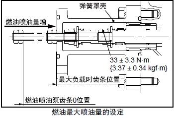 (1) 三菱R16柴油發(fā)動機燃油噴油泵齒條前端(前側(cè))的齒條設(shè)定端帽拆卸的狀態(tài),施加額定(最大)負載。
