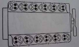 噴油器定時高度范圍:64.340.00±0.20mm第一缸處在排氣沖程時:進氣門間隙:2、4、5、8、9、11排氣門間隙:2、3、7、8、10、11噴油器1、3、6、7、10、12。