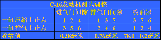 盤車到一缸壓縮上止點,調(diào)整第1,2,4缸進(jìn)氣門和1,3,5缸排氣門的間隙;檢查第3,5,6缸的噴油器正時,不在下表范圍內(nèi)的則進(jìn)行調(diào)整 盤車到一缸排氣上止點,調(diào)整第3,5,6缸進(jìn)氣門和2,4,6缸排氣門的間隙;檢查第1,2,4缸的噴油器正時,不在下表范圍內(nèi)的則進(jìn)行調(diào)整 重復(fù)上面兩步,核查一遍,將氣門的調(diào)整螺栓的鎖緊螺母鎖緊到22+-5磅英尺,將噴油器的調(diào)整螺栓的鎖緊螺母鎖緊到74+-7磅英尺 注意:一定要等發(fā)動機(jī)完全冷卻后才可進(jìn)行上述調(diào)整
