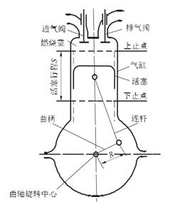 活塞行程:活塞在兩個止點間移動一次的距離,稱為活塞行程,用S表示,S =2R。