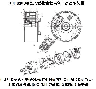 圖4 - 63所示為CA6110-2型機(jī)械離心式供油提前角自動(dòng)調(diào)整裝置的結(jié)構(gòu)。