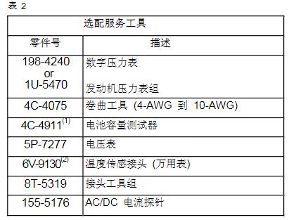 卡特電氣服務工具被設計用來幫助服務工程師完成以下任務:• 獲得信息• 分析系統(tǒng)• 系統(tǒng)校準• 系統(tǒng)設置• 數(shù)據(jù)鏈路通訊所需的服務工具表1列出的工具是服務工程師完成本手冊上的測試程序所需要的。