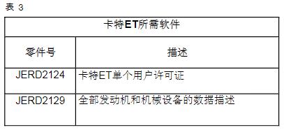 (2)參閱《特別指導》SEHS8382“ 溫度傳感接頭組6V-9130的使用”??ㄌ仉娮蛹夹g裝置(ET)卡特ET能顯示以下信息• 參數(shù)• 事件代碼• 診斷代碼• 發(fā)動機設置技術人員使用卡特ET能實現(xiàn)以下功能:• 診斷測試• 校準• 刷新程序• ECM設置表3列出使用卡特ET所需要的軟件。